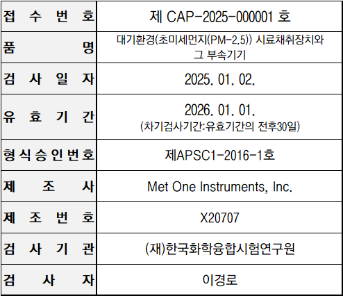 미세먼지 간이측정기 성능인증