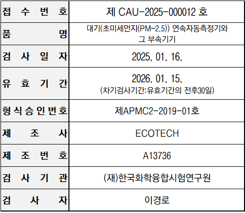 미세먼지 간이측정기 성능인증