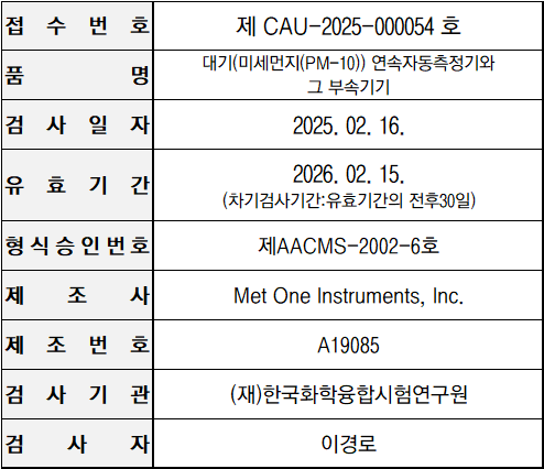 미세먼지 간이측정기 성능인증